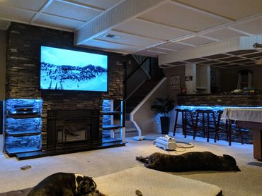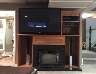 Client would like to remove old fireplace cabinetry and design modern cultured stone entertainment center/fireplace in existing space.